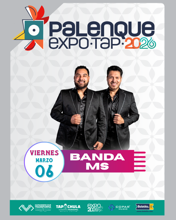 Descripción:Prepárate para vivir una gran noche acompañado de BANDA MS en el Palenque de las ferias de Tapachula en Chiapas este 2026.