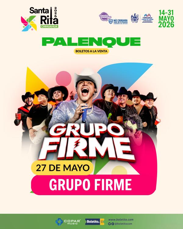 Descripción:Prepárate para vivir una gran noche acompañado de GRUPO FIRME en el Palenque de las ferias de Santa Rita en Chihuahua.