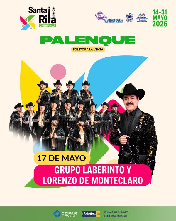Descripción:Prepárate para vivir una gran noche acompañado de LABERINTO Y LORENZO DE MONTECLARO en el Palenque de las ferias de Santa Rita en Chihuahua.